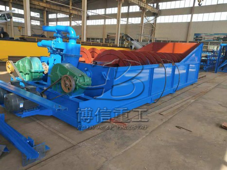 螺旋洗沙机(又称绞龙洗石机)分为双螺旋洗沙机和单螺旋洗沙机,主要用于砂类产品的去除杂质(如粉尘)的机器,因较多是用水洗的方法,故称为洗石机。其中,这里的石更多的是指砂子,所以也被称为洗砂机。因其外观和原理不同,也被称为螺旋洗沙机,滚筒洗石机,水轮洗石机,震动洗石机等。