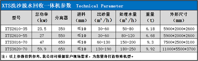 时产150吨洗沙脱水一体机是我们博信重工经过多年的研发,结合市场需求,改良更新换代后的产品,我们生产的XTS系列的洗沙脱水一体机,不但有时产150吨,还有时产50吨、100吨、200吨、300吨等产量的,可根据用户的需求为客户量身定制特殊产量的机型,也可根据客户的需求配置整套设计方案,下面就是我们XTS系列的洗沙脱水一体机型号参数,大家可以根据参数表选择适合的机型。